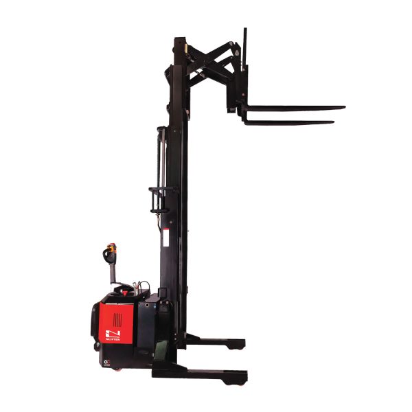 With a maximum mast height that lifts up to 5.5meters is available in two modes of travel options. The operator can choose to operate it as a pedestrian or rider mode to achieve maximum productivity, works quicker and travel safer!