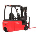 A three-wheeled forklift equipped with a small turning radius and safety features.